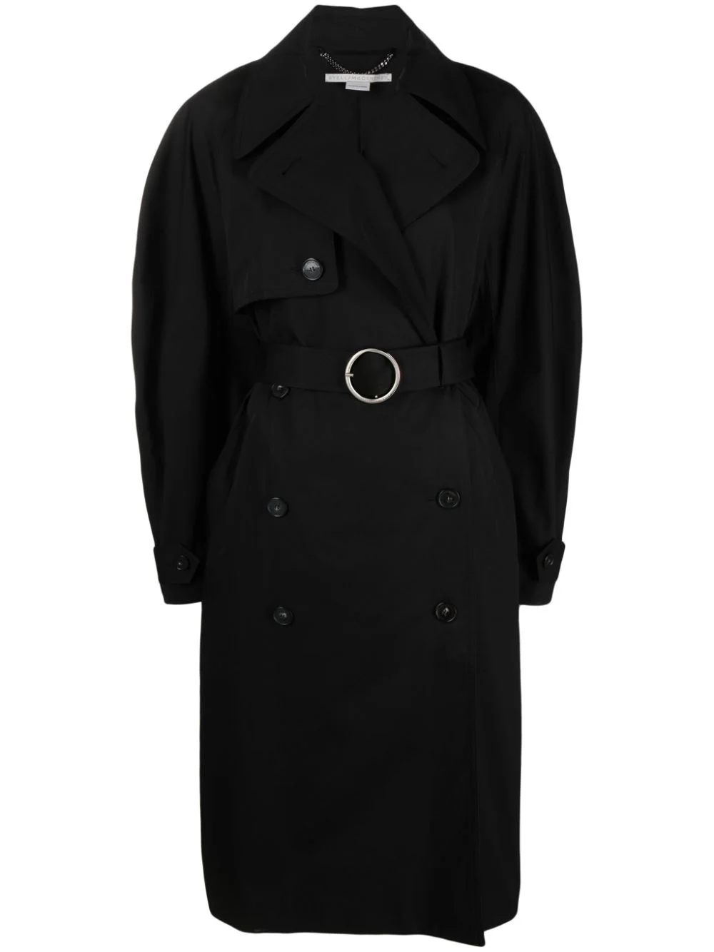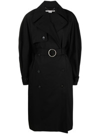 double-breasted belted trench coat A modern take on the classic trench coat, this Stella McCartney design incorporates the brand's contemporaneity. Realised in versatile black, the double-breasted coat is cinched at the waist with a wide belt. Highlights - Black - Cotton blend - Gabardine weave - Silver-tone hardware - Storm flap - Wide notch lapels - Double-breasted button fastening - Belted waist - Long sleeves - Belted cuffs Imported Composition Lining: Viscose 52%, Cotton 48% Outer: Cotton 100% SIZE & FIT Model measurements Height 5 ft 10 in(1.79 m) Bust/Chest 31.1 in(79 cm) Hips 35.03 in(89 cm) Waist 24.01 in(61 cm) FittingInformation Designed to be unstructured, offering a loose fit throughout The belt offers adjustability for fitted preferences Made from a midweight non-stretch fabric This piece fits true to size – take your usual size
