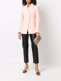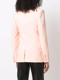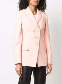 double-breasted tailored blazer Pastel tones are in order on Stella McCartney's SS22 collection, being this double-breasted blazer one of the most classical pieces. The tailored cut provides an elegant silhouette, well-blended with the freshness of the peach pink colour. Highlights - Peach pink - Peak lapels - Double-breasted button fastening - Long sleeves - Buttoned cuffs - Front flap pockets - Central rear vent Imported Composition Outer: Polyester 98%, Spandex/Elastane 2% Lining: Viscose 52%, Cotton 48% SIZE & FIT Model measurements Height 5 ft 10 in(1.78 m) Bust/Chest 33.07 in(84 cm) Hips 36.61 in(93 cm) Waist 24.8 in(63 cm) Washing instructions Dry Clean Only
