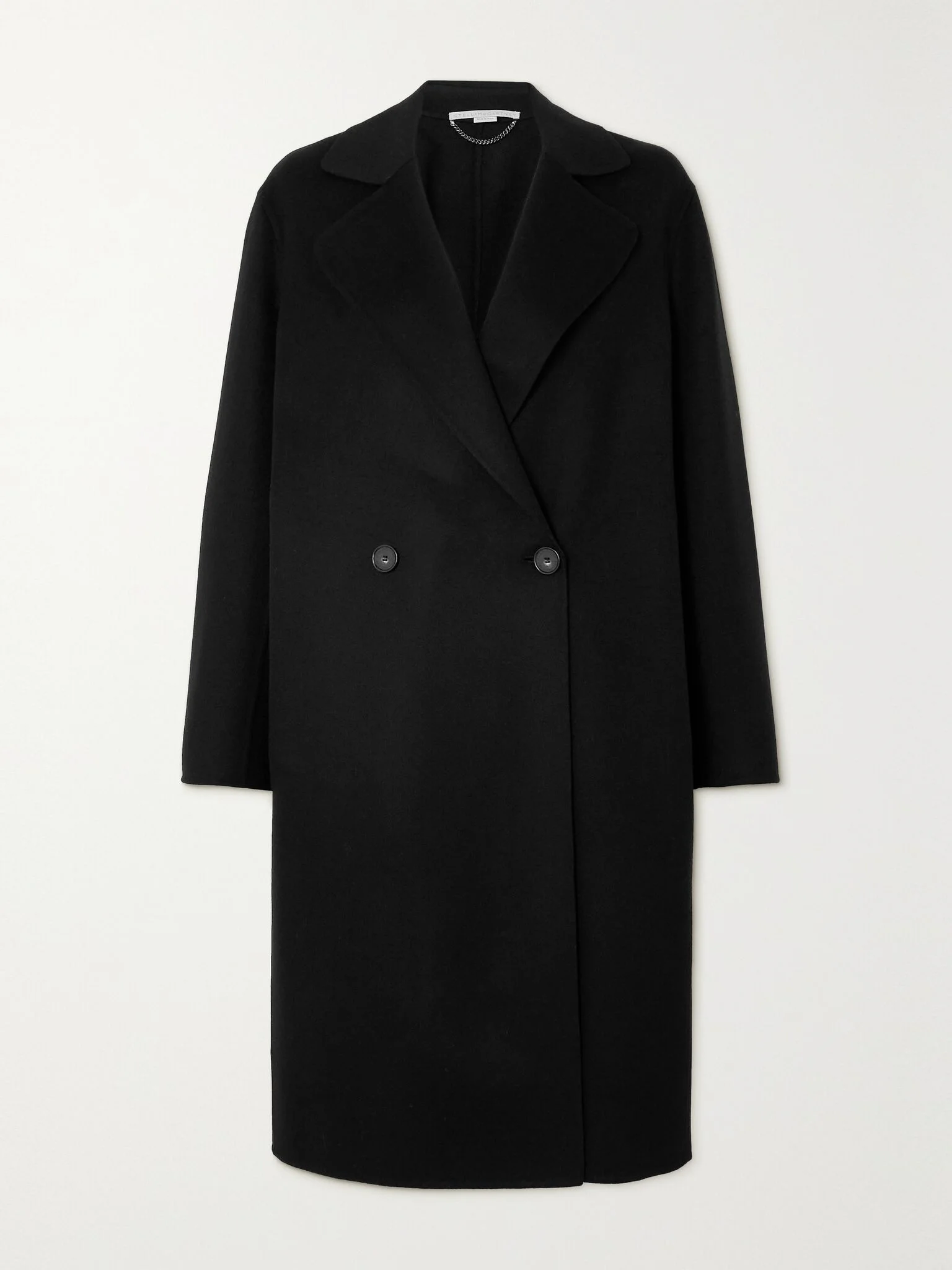 Stella McCartney’s coat is part of the 'Iconic' collection, which revisits cult pieces from the brand's archives. It’s tailored from brushed double-faced wool with wide notch lapels framing the elegant double-breasted profile. Team it with anything from muted tailoring to blue jeans. Size & Fit - Fits true to size, take your normal size - Designed for a slightly loose fit - Mid-weight, non-stretchy fabric - Model is 180cm/ 5’11” and is wearing an IT 40 Details & Care - Black wool - Button fastenings through double-breasted front - 100% wool - Dry clean