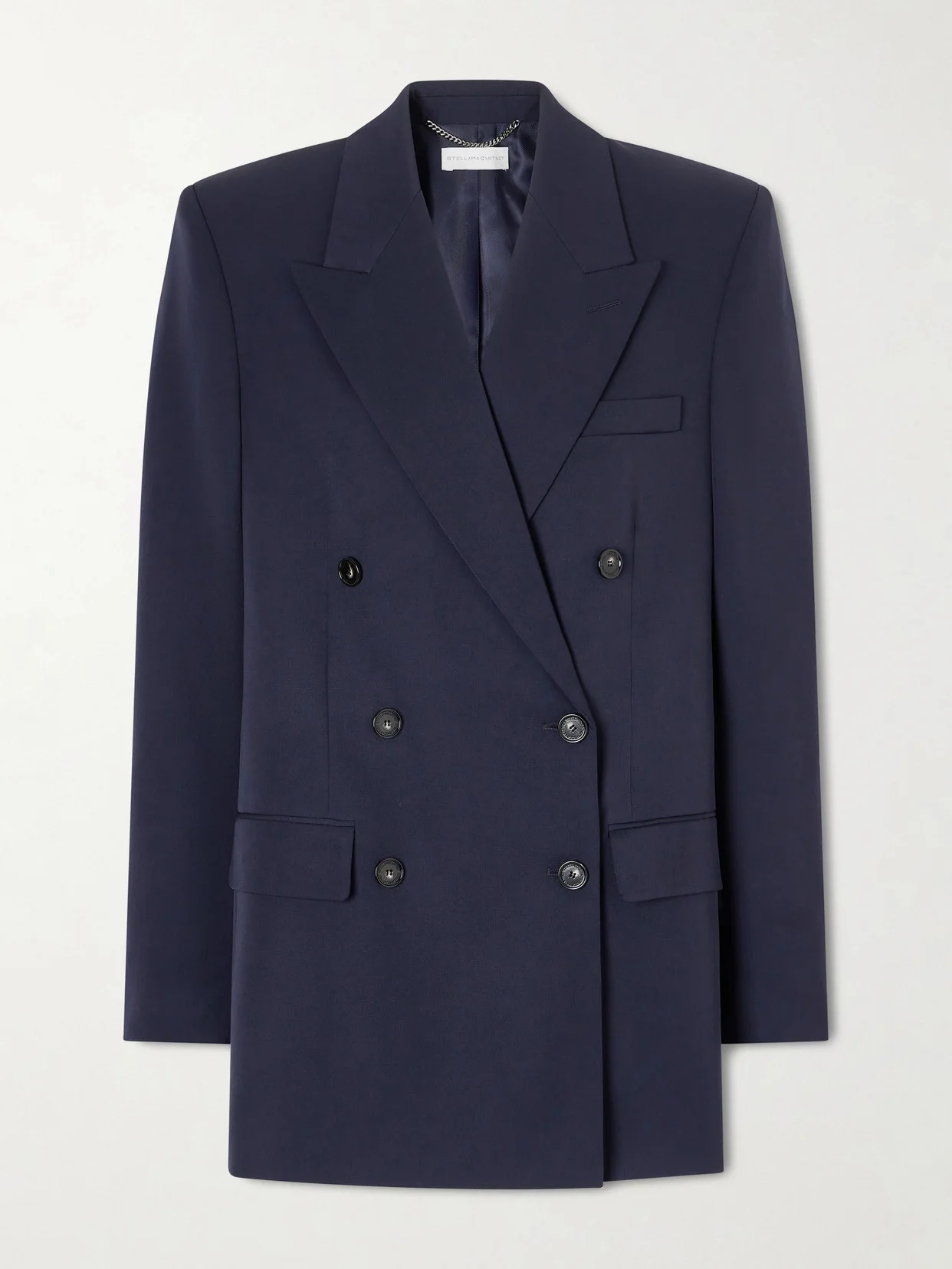Exceptional suiting comes naturally to Stella McCartney - a skill honed by the founder under the guidance of renowned Savile Row tailor Edward Sexton. This blazer is tailored from wool-twill in a boxy shape with a double-breasted profile, padded shoulders and wide peak lapels. It's a timeless staple you'll love for years. Lower-Impact Materials. This product is made using at least 50% lower-impact materials or ingredients. Find out more about our NET SUSTAIN criteria here.