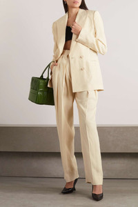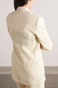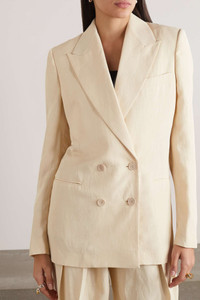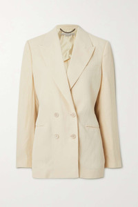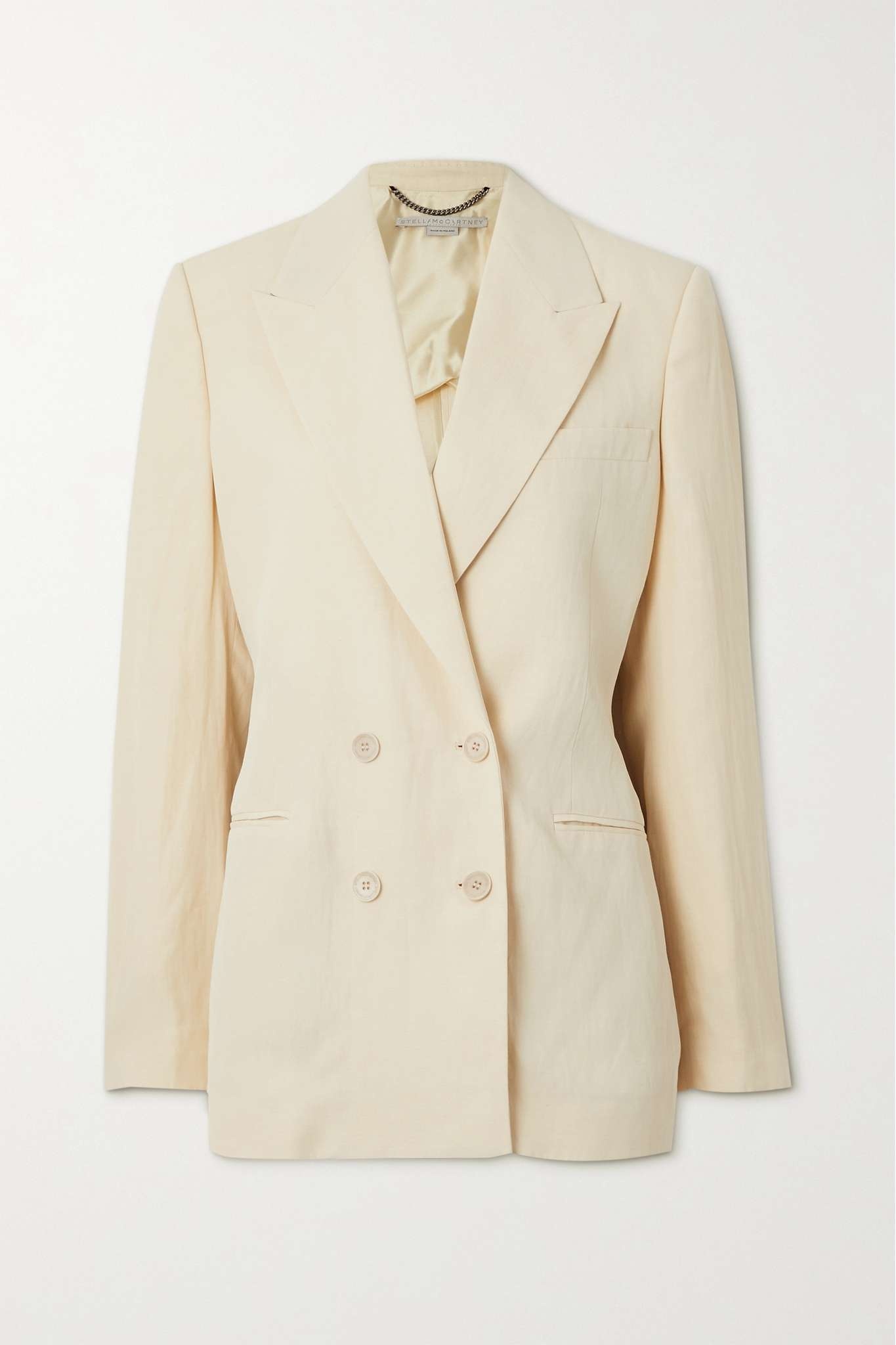 EDITORS'NOTES Stella McCartney's blazer comes in a soft 'Buttermilk' hue, which works just as well with other neutrals as it does with bright colors and prints. Woven with a touch of linen, it has a relaxed double-breasted silhouette with classic peak lapels. SIZE & FIT - Fits true to size, take your normal size - Tailored for a slightly loose fit - Internal shoulder pads - Mid-weight, non-stretchy/ fabric - Model is 175cm/ 5'9" and is wearing an IT 40 DETAILS & CARE - Cream viscose and linen-blend - Button fastenings through double-breasted front - 72% viscose, 28% linen - Designer color: Buttermilk