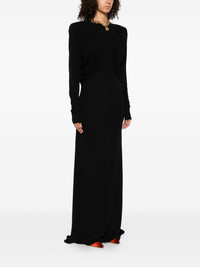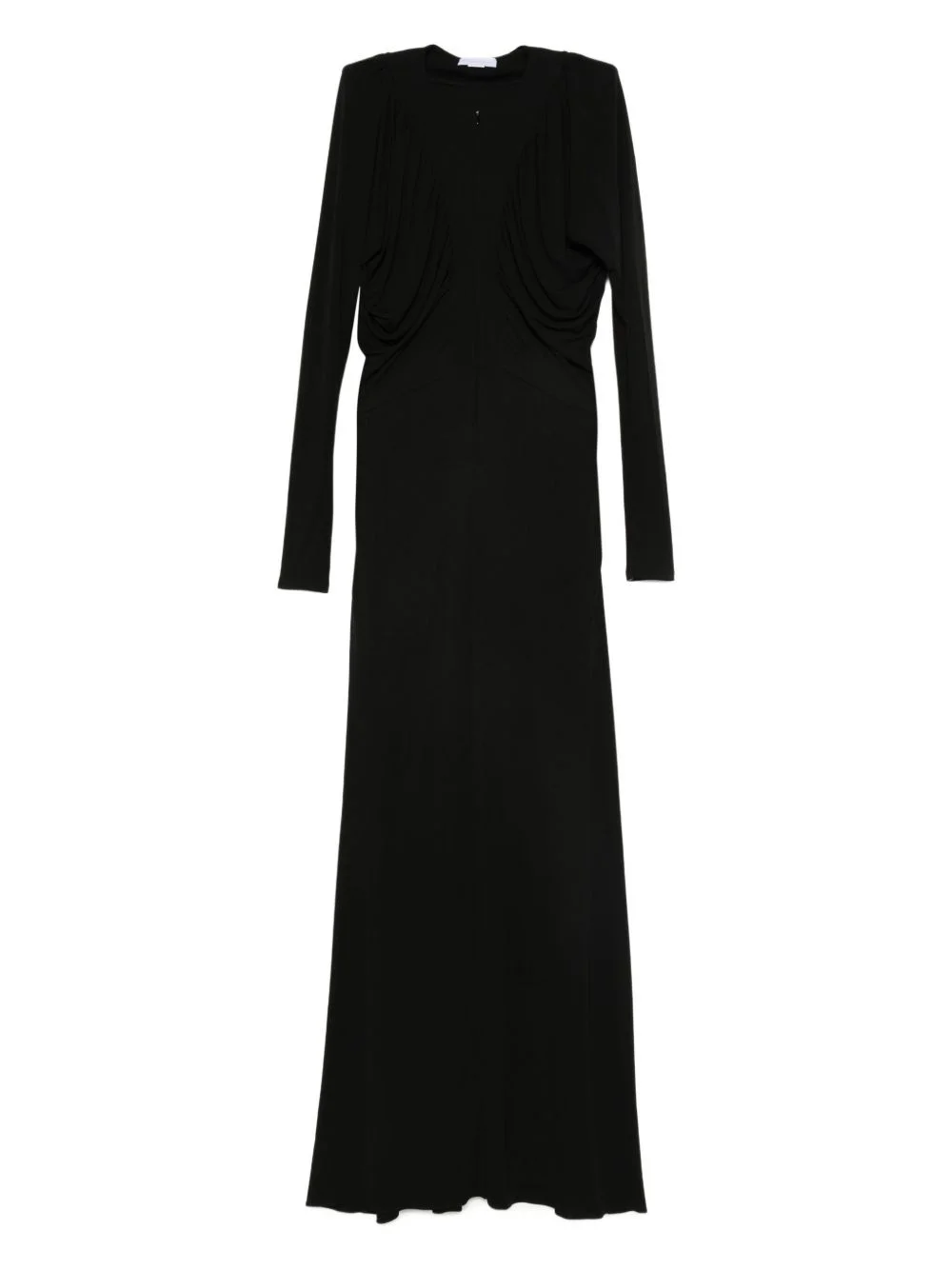 draped-detail maxi dress Highlights - Black - Long sleeves - Draped bodice - Floor-length skirt - Round neck Made in Italy Composition Viscose 100% SIZE & FIT Model measurements Height 5 ft 10 in(1.79 m) Bust/Chest 31.88 in(81 cm) Hips 35.43 in(90 cm) Waist 23.62 in(60 cm) Washing instructions Read Manufacturer Guidelines