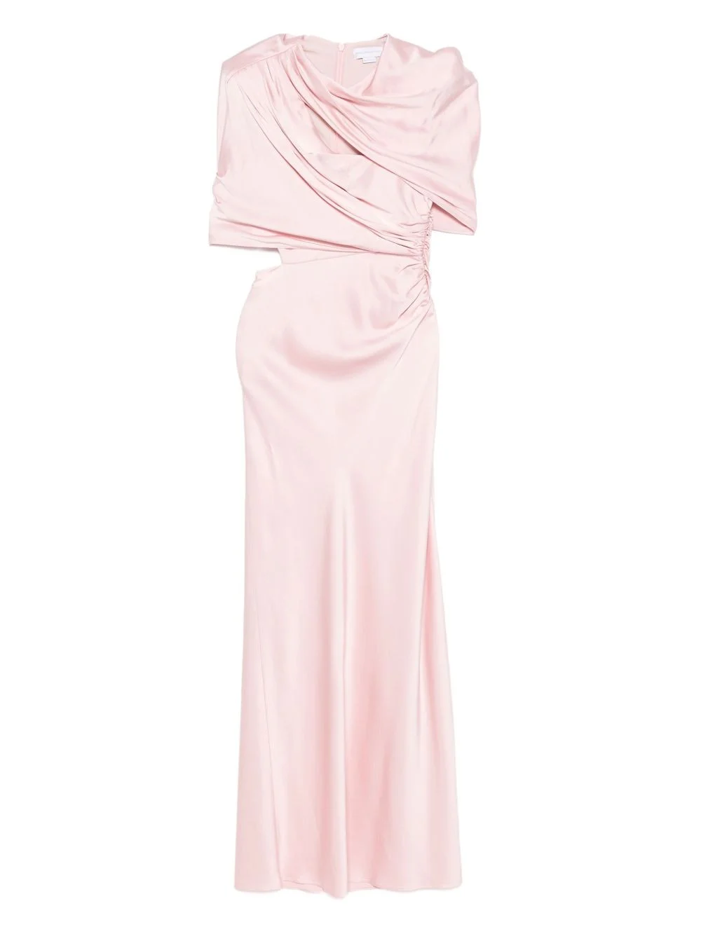 Draped ruched dress Highlights - Pink - Draped detailing - Ruched detailing - Cut-out detailing - Floor-length Imported Composition Acetate 73%, Viscose 27% SIZE & FIT Model measurements Height 5 ft 10 in(1.79 m) Bust/Chest 30.31 in(77 cm) Hips 34.64 in(88 cm) Waist 23.62 in(60 cm) FittingInformation Designed for a slim fit that sits just away from the body offering a close yet comfortable fit The internal shoulder pads offer a structured shape Made from a midweight non-stretch fabric Washing instructions Dry Clean Only