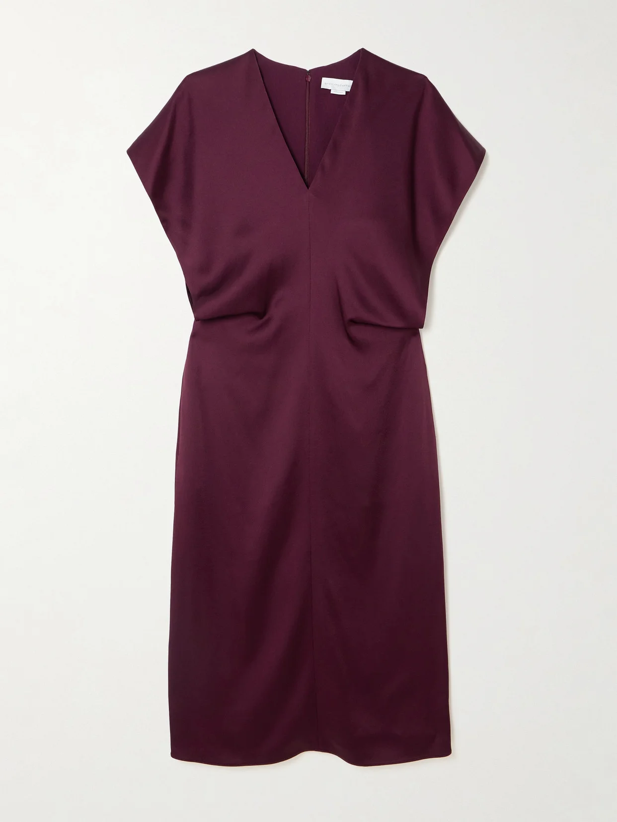 Stella McCartney understands that sometimes the boldest statement is simplicity itself. This midi dress is made from lustrous satin with a fluid handle and has cap sleeves and subtle draping. The gently nipped-in waist elegantly defines the loose shape. Large to size. See Size & Fit notes.