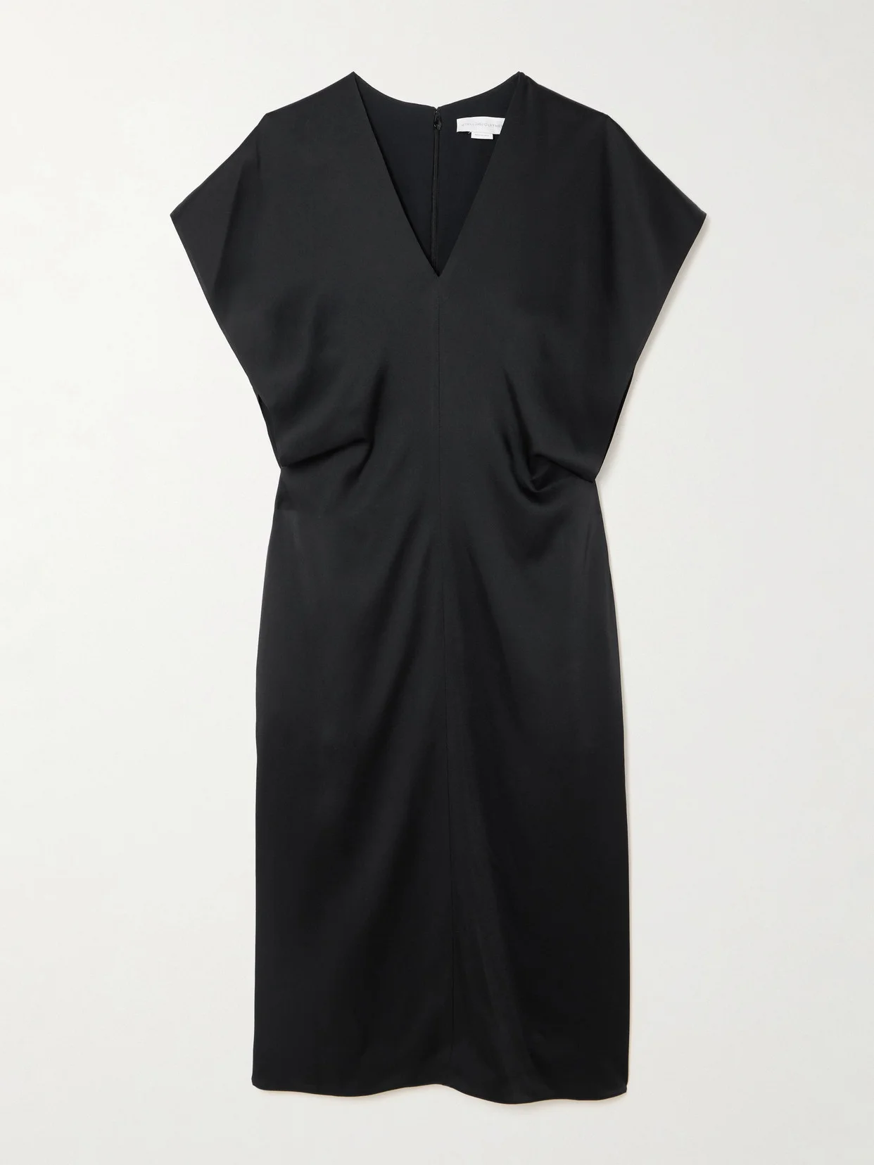 Stella McCartney understands that sometimes the boldest statement is simplicity itself. This midi dress is made from lustrous satin with a fluid handle and has cap sleeves and subtle draping. The gently nipped-in waist elegantly defines the loose shape. Large to size. See Size & Fit notes.