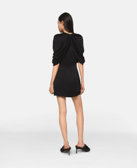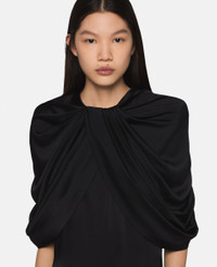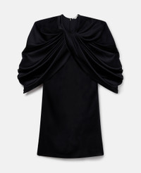 Embodying a free-spirited fluidity, this Stella McCartney dress enwraps the torso with lustrous satin made from forest friendly viscose – draping effortlessly over both shoulders, finishing at elbow-length sleeves. Beneath lies the silhouette of a perfectly streamlined black mini. Turn heads and pair it with some kitten heels. - Colour: Black - Midnight black - Satin fabric in forest-friendly viscose - Three-quarter length sleeves - Wrap-over shoulders - Figure-skimming outline - Thigh-length hem - Zip and hook fastening