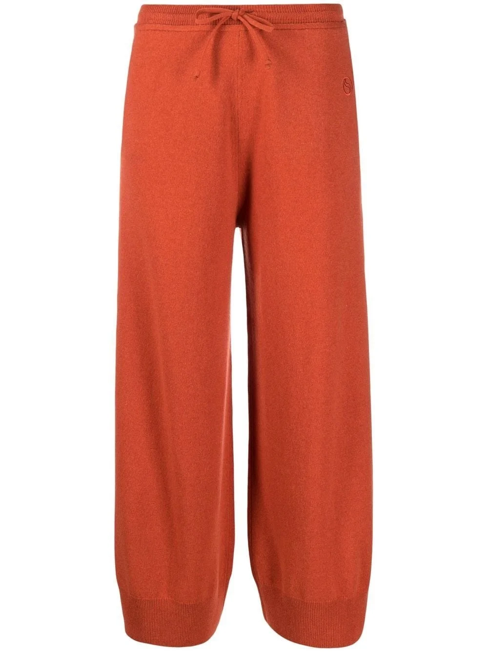 drawstring knitted trousers Blending style with comfort, these knitted trousers from STELLA MCCARTNEY feature a straight, relaxed cut in a vibrant orange hue. Their design is crafted from a mix of wool and cashmere and is enhanced with a tonal embroidered logo on the front. Made in Italy Composition Cashmere 75%, Wool 25% SIZE & FIT Model measurements Height 5 ft 11 in(1.8 m) Bust/Chest 31.49 in(80 cm) Hips 35.43 in(90 cm) Waist 25.19 in(64 cm) FittingInformation This piece fits true to size. We recommend you get your regular size Designed to be fitted at the waist and hips, loose over the leg Made with a mid-weight fabric Washing instructions Hand Wash