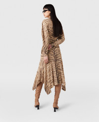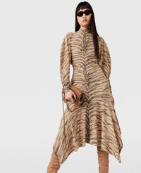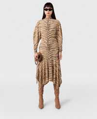 Item 6J03193SPZ379500 No tigers were harmed in the making of this dress. It is spun from soft, stretchy fabric, printed with an all-over tiger pattern. Its slinky, torso-skimming silhouette is topped with a high neckline and long puff sleeves, with an asymmetric, pleated skirt to finish. Wear it with some chunky Skyla boots for an added ethical edge. - Color: Natural - Natural tiger print - Turtleneck - Long puff sleeves - Asymmetric pleated skirt - All-over tiger pattern - Knee-length hem - Zipper fastening - Made in Italy Product Care & Fit Advice Care: Dry clean only Composition: Main fabric: 73% polyamide 27% elastane Size: Fits true to size Designed for a regular fit Lightweight, stretch fabric