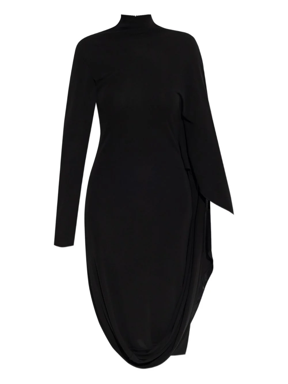 long sleeve dress Highlights - Black - High neck - Long sleeves - Asymmetric hem Made in Italy Composition Viscose 100% SIZE & FIT FittingInformation Designed for a slim fit that sits just away from the body offering a close yet comfortable fit Made from a midweight non-stretch fabric