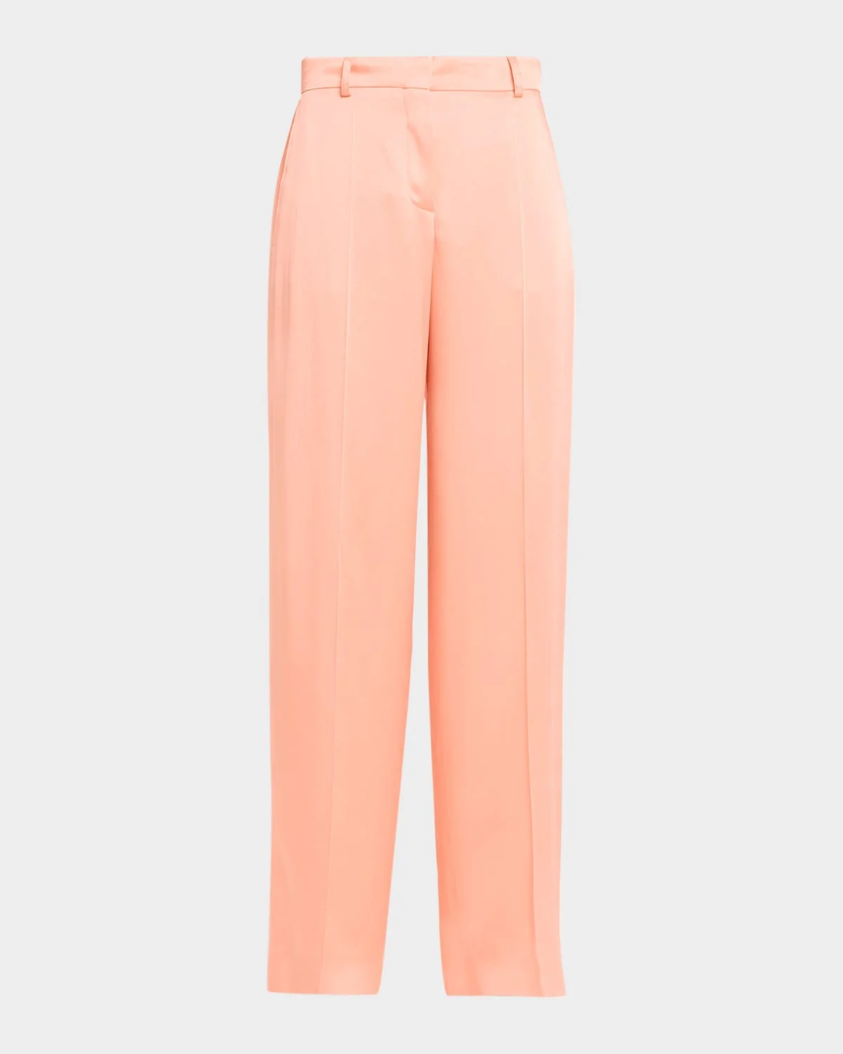 Crafted from lustrous satin, these trousers by Stella McCartney feature a dropped waist and pressed center creases Mid rise sits high on hip Angled side slip pockets Back buttonwelt pocket Straight legs Full length Hook/zip fly; belt loops Acetate/viscose Dry clean Made in Italy