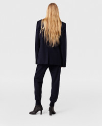 Item 3414163CU7034000 Spun from ethically sourced wool, these sweatpants are cut to a mid-rise waistline and fall to tapered legs with centered pleats. Thoughtfully finished with elasticated trims, they’re ready to be slipped on with the matching blazer and a pair of S-Wave sneakers. - Color: Navy - Deep navy - Flat waistband - Elasticated waist and cuffs - Two front pleats - Two side pockets - Slips on - Made in Romania Product Care & Fit Advice Care: Dry clean only Composition: Main fabric: 100% wool - Size: Fits true to size - Designed for a regular fit - Midweight, non-stretch fabric
