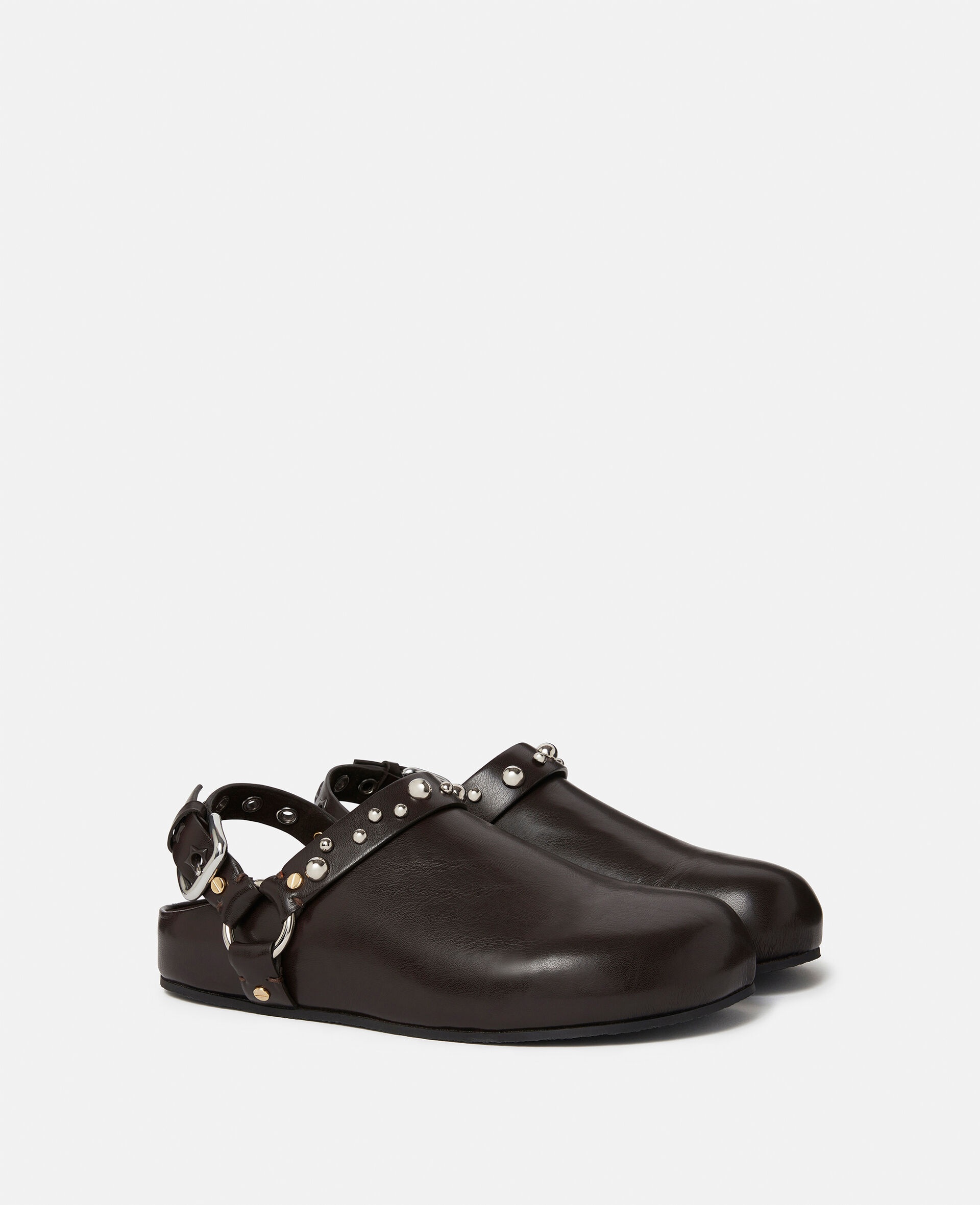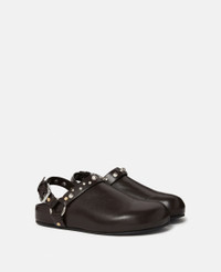 Item 810444AP02502007 Sculpted from our soft, buttery vegan alternative to animal leather, these slingback clogs are a versatile everyday Fall 2024 shoe. The upper is punctuated with a studded ankle strap, featuring a variation of domed and flat embellishments in mixed metals aligned with this season’s ready-to-wear. - Color: Brown - Coffee brown - Alter Mat vegan alternative to animal leather - Silver-toned buckle strap - Mixed metal studs - Closed, rounded toe - Buckle fastening - Bio-based sole - Made in Italy Product Care & Fit Advice Care: Spot clean only with soft damp cloth Composition: Main fabric: 54% polyester 46% polyurethane Size: Fits true to size