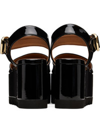 Handcrafted patent faux-leather sandals. · Cutout at toe · Pin-buckle ankle strap · Covered wedge heel and platform midsole · FSC-certified beech wood heel and midsole · Treaded rubber sole · Platform: H2.75" · Heel: H3.5" Made from cruelty-free, non-animal materials. Supplier color: Black Upper: synthetic. Sole: wood, rubber. Made in Italy 252471F124003
