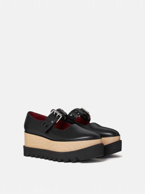 Item 810423AP02501000 The iconic Elyse platform shoes are a mainstay in any Stella woman's wardrobe. New for Fall 2024, this pair of vegan Mary Janes add an edgy touch to any look, with star-shaped studs along the midsole. These platforms are finished with a buckle detail around the foot tonal, a lowered wedge heel and a signature saw-edge micro sole. - Color: Black - Midnight black - Alter Mat vegan alternative to animal leather - Silver-toned buckle strap - Star-shaped studs - Closed, rounded toe - FSC-certified wood wedge platform - Signature saw-edge micro sole - Buckle fastening - Made in Italy Product Care & Fit Advice Care: Spot clean only with soft damp cloth Composition: Main fabric: 51% polyester 49% aliphatic solvent-free resins Size: Fits true to size