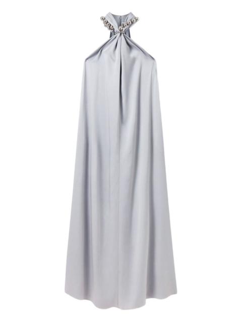 embellished halter-neck maxi dress Highlights - Burgundy - Halter neck - Bead embellishment - Draped bodice - Zip fastening at the back - Two slip pockets Made in Italy Composition Acetate 73%, Viscose 27% SIZE & FIT Model measurements Height 5 ft 11 in(1.8 m) Bust/Chest 31.49 in(80 cm) Hips 36.61 in(93 cm) Waist 24.4 in(62 cm) Washing instructions Dry Clean Only