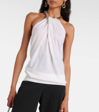 Embellished halterneck wool top