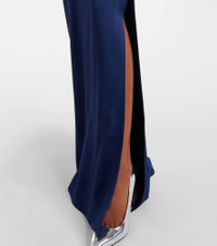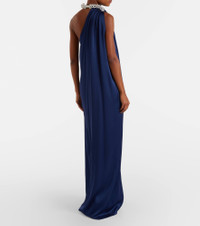 A consistently fresh aesthetic is underpinned by Stella McCartney’s attention to detail and dedicated approach to ethical fashion. This gown is crafted from satin with a one-shoulder silhouette, and is complete with a crystal-embellished collar. Product Details - Material: 73% acetate, 27% viscose - Care instructions: dry clean - Made in Italy - Color: blue - Designer color name: Navy - Item color: blue - Lining: 73% acetate, 27% silk - Includes: garment bag - Item number: P01132604 Size & Fit - Fits large to size - we recommend trying one size smaller - Designed for a loose fit - Non-stretchy fabric - The model seen in the picture is 178cm-5'10" and wearing a size IT 38