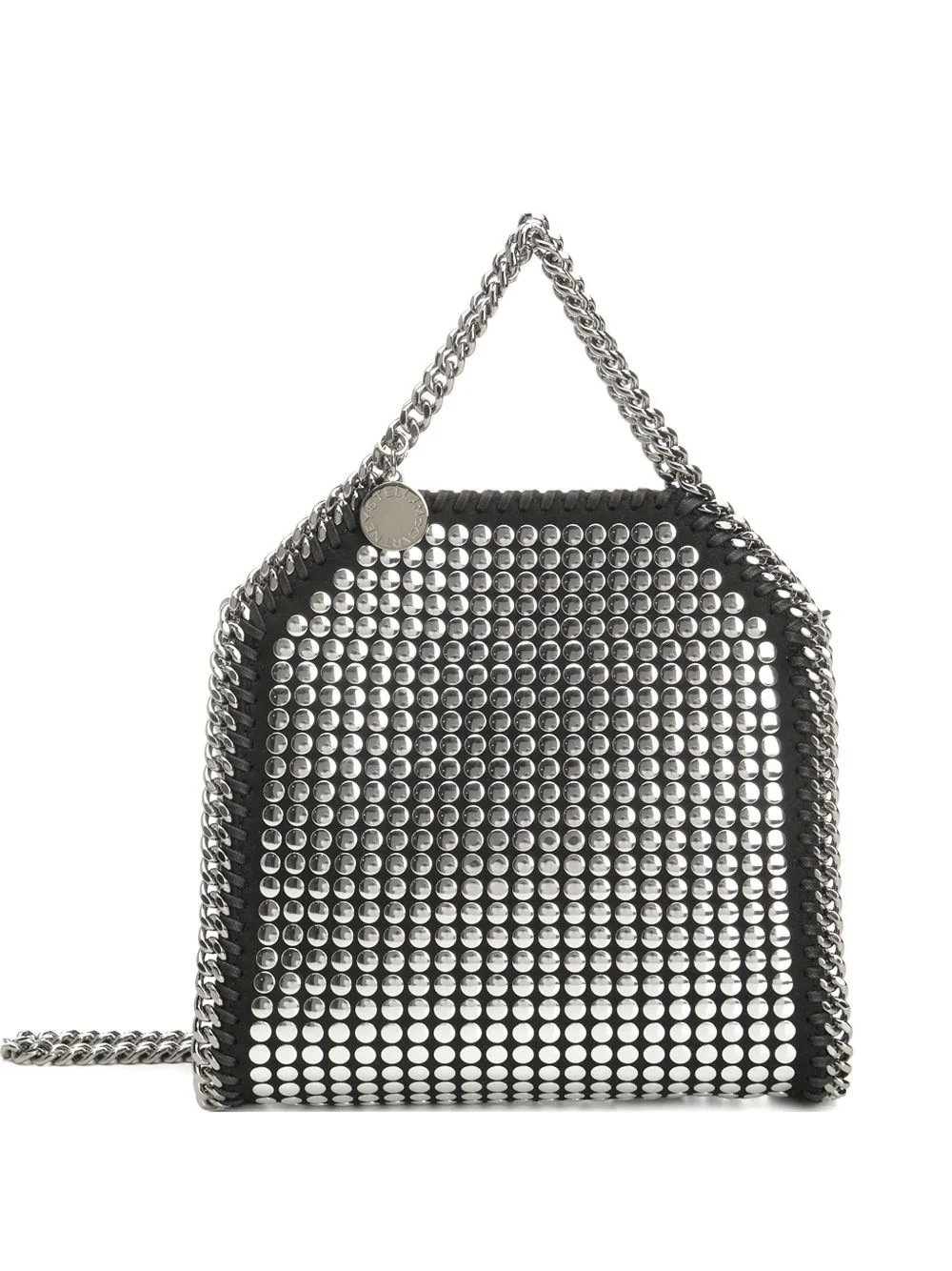 Falabella embellished tote bag Highlights - Black - Stud design - Chain strap - Top handles - Logo charm Made in Italy Composition Outer: Polyamide 100%, Polyester 100% SIZE & FIT Measurement DEPTH 2.55 in(6.5 cm) HEIGHT 7.28 in(18.5 cm) WIDTH 7.67 in(19.5 cm)