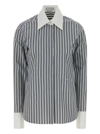 striped shirt Highlights - Grey/white - Vertical stripe pattern - Button fastening - Long sleeves - Straight-point collar Imported Composition Fabric 100% Washing instructions Read Manufacturer Guidelines