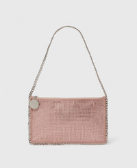 Item 7P0076WP04965762U Our coveted and iconic Falabella is revisited in a sleek pochette silhouette for Spring 2025. The immediately recognizable glossy grained Shaggy Deer Fabric and glinting diamond-cut chain are reinterpreted for this playful, vegan shoulder bag – designed for the ultimate day-to-night appeal. - Color: Dusty pink - Comfortably fits all phones alongside small daily essentials - Matte vegan Shaggy Deer fabric with semi-gloss grain - Signature ruthenium recycled brass and aluminum diamond-cut chain - One shoulder strap - One main compartment - Zipper closure - Engraved ruthenium logo medallion - Recycled polyester monogram lining - Handcrafted in Italy Product Care & Fit Advice Care: Spot clean only with soft damp cloth. Composition: 100% Polyamide - Fit: Comfortably fits all phones alongside small daily essentials - Size: 9.4 x 5.7 x 0.3 in - Handle drop: 8 in - Weighs approximately 8.6 oz