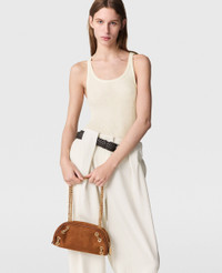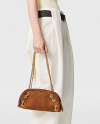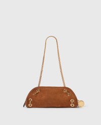 Item 7B0145WP05435742U Our coveted and iconic Falabella is revisited in an edgy bowling bag silhouette for Summer 2025. The immediately recognizable vegan suede alternative and glinting diamond-cut chain are reinterpreted for this playful, cruelty-free shoulder bag – designed for the ultimate day-to-night appeal. - Color: Brandy - Comfortably fits all phones alongside small daily essentials - Vegan alternative to suede - Signature gold recycled brass and aluminum diamond-cut chain - Two shoulder straps - One main compartment - Zipper closure - Engraved ruthenium logo medallion - Recycled polyester monogram lining - Handcrafted in Italy Product Care & Fit Advice - Care: Spot clean only with soft damp cloth. - Composition: 100% Polyamide - Fit: Fits all phones, wallets and small daily essentials. - Size: 10.2 x 4.3 x 3.9 in - Strap length: 8.2 in - Weighs approximately 14.8 oz