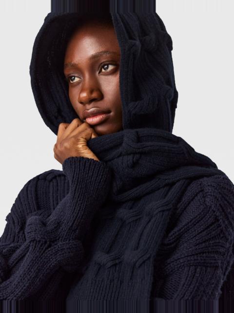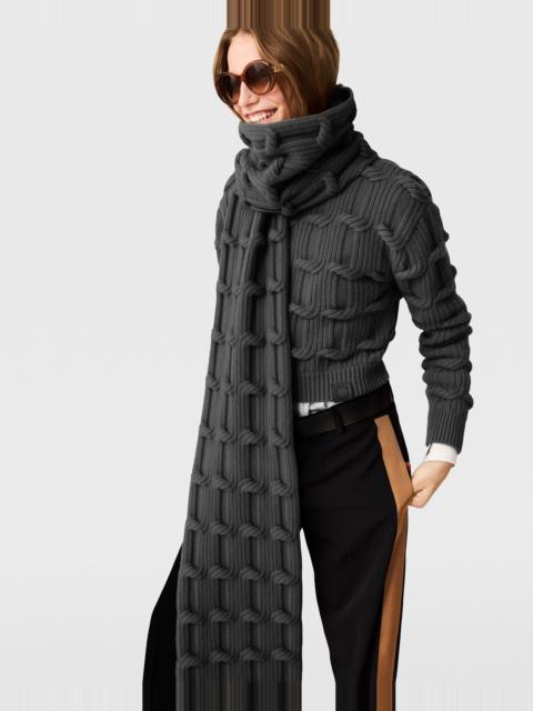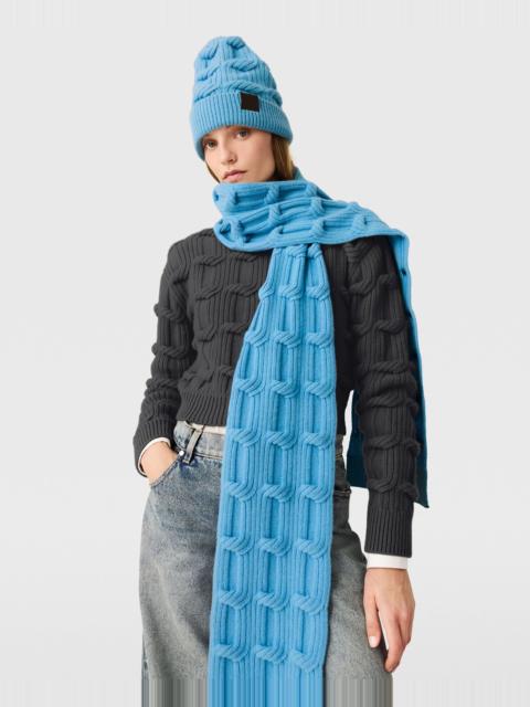 Item 6K11723S26164000U Spun from soft 100% RWS-certified wool, this scarf is shaped to a chunky, cable-knit silhouette inspired by our iconic Falabella chain, topped with a Stella McCartney logo patch sewn onto the ribbed trim. Pair it with the coordinating beanie. - Colour: Navy - Chunky - Falabella chain-inspired cable-knit - Stella McCartney logo patch - Ribbed trims - Wraps on - Handcrafted in Italy Product Care & Fit Advice - Care: Dry clean only - Composition: 100% Wool One size