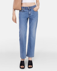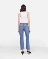 Item 6D01913SPH564599 - Colour: Mid Blue - Light wash medium blue - Organic cotton denim - Silver Falabella chain at waistband - Stella McCartney logo patch at back - Zip fly with button secure - Belt loops - Five-pocket design - Made in Italy Product Care & Fit Advice - Care: Dry clean only - Composition: Main fabric: 100% organic cotton, Secondary fabric: 75% polyester, 25% organic cotton, Trims: 100% polyester - Fits true to size - Designed for a regular fit - Midweight, non-stretch fabric