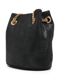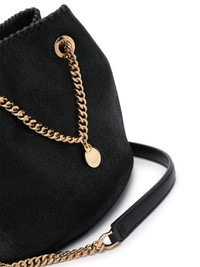 Falabella metallic bucket bag Highlights - Black - Faux leather - Metallic effect - Gold-tone hardware - Top drawstring fastening - Sliding chain-link shoulder strap - Main compartment - Internal slip pocket - Logo-print lining Made in Italy Composition Outer: Polyurethane 100% SIZE & FIT Model measurements Height 5 ft 10 in(1.77 m) Bust/Chest 34.64 in(88 cm) Hips 35.43 in(90 cm) Waist 24.8 in(63 cm) Measurement DEPTH 4.72 in(12 cm) HEIGHT 7.48 in(19 cm) STRAP 20.47 in(52 cm) WIDTH 9.05 in(23 cm)