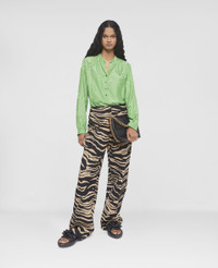 Connected to nature is our Spring 2023 bright green shirt. Responsibly made from a forest-friendly viscose-silk blend jacquard, the shirt has a polished stand collar and buttoned cuffs, deftly finished with an all-over tonal Falabella chain print. - Colour: Bright Green - Pastel lime green - Forest-friendly viscose-silk blend jacquard - All-over tonal Falabella chain print - Stand collar - Long sleeves - Button cuffs - Three-quarter button fastening - Rounded split hem - Made in Albania Product Care & Fit Advice - Care: Dry clean only - Composition: 53% viscose, 47% silk
