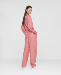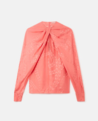 Our iconic Falabella chain is reimagined on this silk jacquard top. The top has a soft, twist collar detail and buttoned cuffs to create a coordinated silhouette. Consciously crafted from forest-friendly viscose and silk, the top has an all-over Falabella chain print. - Colour: Bubblegum Pink - Bright bubblegum pink - Forest-friendly viscose and silk blend jacquard - All-over tonal Falabella chain print - Twist collar detail - Crew neck - Long raglan sleeves - Button cuffs - Concealed back zip fastening - Made in Hungary Product Care & Fit Advice - Care: Dry clean only - Composition: 53% viscose, 47% silk