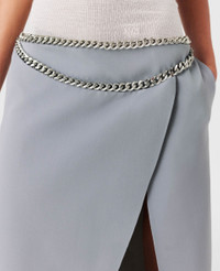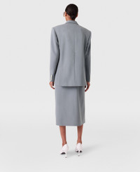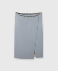 Item 6301293CU7049940 Stella McCartney studied on Savile Row, tutored by the legendary Edward Sexton – evidenced by this expertly tailored skirt. Fashioned from RWS-certified wool, this asymmetric midi is cut to a mid-rise waist embellished with an iconic Falabella chain skimming the hips. Pair it with the coordinating blazer. - Color: Mist - Mid-rise - Asymmetric cut - Falabella chain at waistband - Two pleats beginning at each hip - Slit in front - Concealed zipper closure - Calf-length hem - Made in Romania Product Care & Fit Advice Care: Dry clean only Composition: 97% wool, 3% elastane Fit: Regular fit Sizing: Take your usual size Midweight, non-stretch fabric