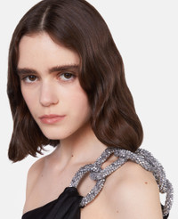Falabella Crystal Chain Double Satin One-Shoulder Mini Dress