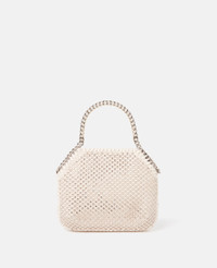 Item 700109WP02299325U Primed for evening wear, this Falabella mini tote bag is carefully crafted from intricate crystal mesh. The Italian-made tote is elevated with our iconic diamond-cut chain and an engraved logo medallion charm. - Colour: Almond - Almond milk white - Satin with crystal mesh overlay - Signature silver recycled brass and aluminium diamond-cut chain - Waxed GOTS-certified organic cotton lacing - Two top handles - One internal slip pocket - Magnetic snap fastening - Engraved silver logo medallion charm - Fully lined with recycled materials - Made in Italy Product Care & Fit Advice Care: Do not wash or clean. Avoid scrubbing to prevent damaging the surface of the bag. As this accessory is made from very delicate material, we recommend handling with care and avoiding contact with any sharp objects, jewellery or rough surfaces. When not in use, always store the item in its protective bag. Composition: Main fabric: 100% polyester, Contrast: 70% solvent-less polyurethane, 30% recycled polyester, Crystals: 100% glass - Size: 18.5 x 15 x 5cm - Strap length: 46cm - Handle drop: 10cm - Weighs approximately 0.456kg - All of our shoes and accessories are made from non-leather materials in keeping with our cruelty-free ethos.