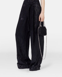 Item 700109WP02291000U Primed for evening wear, this Falabella mini tote bag is carefully crafted from intricate crystal mesh. The Italian-made tote is elevated with our iconic diamond-cut chain and an engraved logo medallion charm. - Colour: Silver - Shimmering silver - Satin with crystal mesh overlay - Signature palladium diamond-cut chain - GOTS-certified cotton lacing - Shoulder strap, and two top handles - One internal slip pocket - Magnetic snap fastening - Engraved palladium logo medallion charm - Fully lined with recycled materials - Made in Italy Product Care & Fit Advice - Care: Do not wash or clean. Avoid scrubbing to prevent damaging the surface of the bag. As this accessory is made from very delicate material, we recommend handling with care and avoiding contact with any sharp objects, jewellery or rough surfaces. When not in use, always store the item in its protective bag. - Composition: Main fabric: 100% raffia, Trims: 70% polyurethane, 15% polyester, 15% polyamide, Lacing: 50% polyamide, 50% polyurethane - Size: 18.5 x 15 x 5cm - Handle drop: 10cm - Strap length: 46cm - Weighs approximately 0.456kg - All of our shoes and accessories are made from non-leather materials as part of our cruelty-free ethos.
