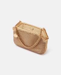 Item 700109WP02292502U Primed for evening wear, this Falabella mini tote bag is carefully crafted from intricate lead-free crystal mesh. The Italian-made tote is elevated with our iconic diamond-cut chain and an engraved logo medallion charm. - Colour: Fawn - Light warm tan - Satin with crystal mesh overlay - Signature gold diamond-cut chain - GOTS-certified cotton lacing - Shoulder strap, and two top handles - One internal slip pocket - Magnetic snap fastening - Engraved gold logo medallion charm - Fully lined with recycled materials - Made in Italy Product Care & Fit Advice - Care: Use a soft damp cloth with a small amount of demineralised water (likewise for ironing) and apply to all the material. Leave the bag to dry. Avoid scrubbing to prevent damaging the surface of the bag. As this accessory is made from very delicate fabric, we recommend handling with care and avoiding contact with any sharp objects, jewellery, or rough surfaces. When not in use, always store the item in its protective bag. - Composition: Main fabric: 55% post-consumer recycled polyester, 45% polyester, Lacing: 100% organic cotton, Handle and strap chains: 100% recycled brass, Body chains: 100% aluminium, Trims: 70% solventless polyurethane, 30% post-consumer recycled polyester, Crystals: 100% lead-free crystal, Lining: 100% recycled PET polyester - Size: 18.5 x 15 x 5cm - Handle drop: 10cm - Strap length: 46cm - Weighs approximately 0.456kg - All of our shoes and accessories are made from non-leather materials as part of our cruelty-free ethos.