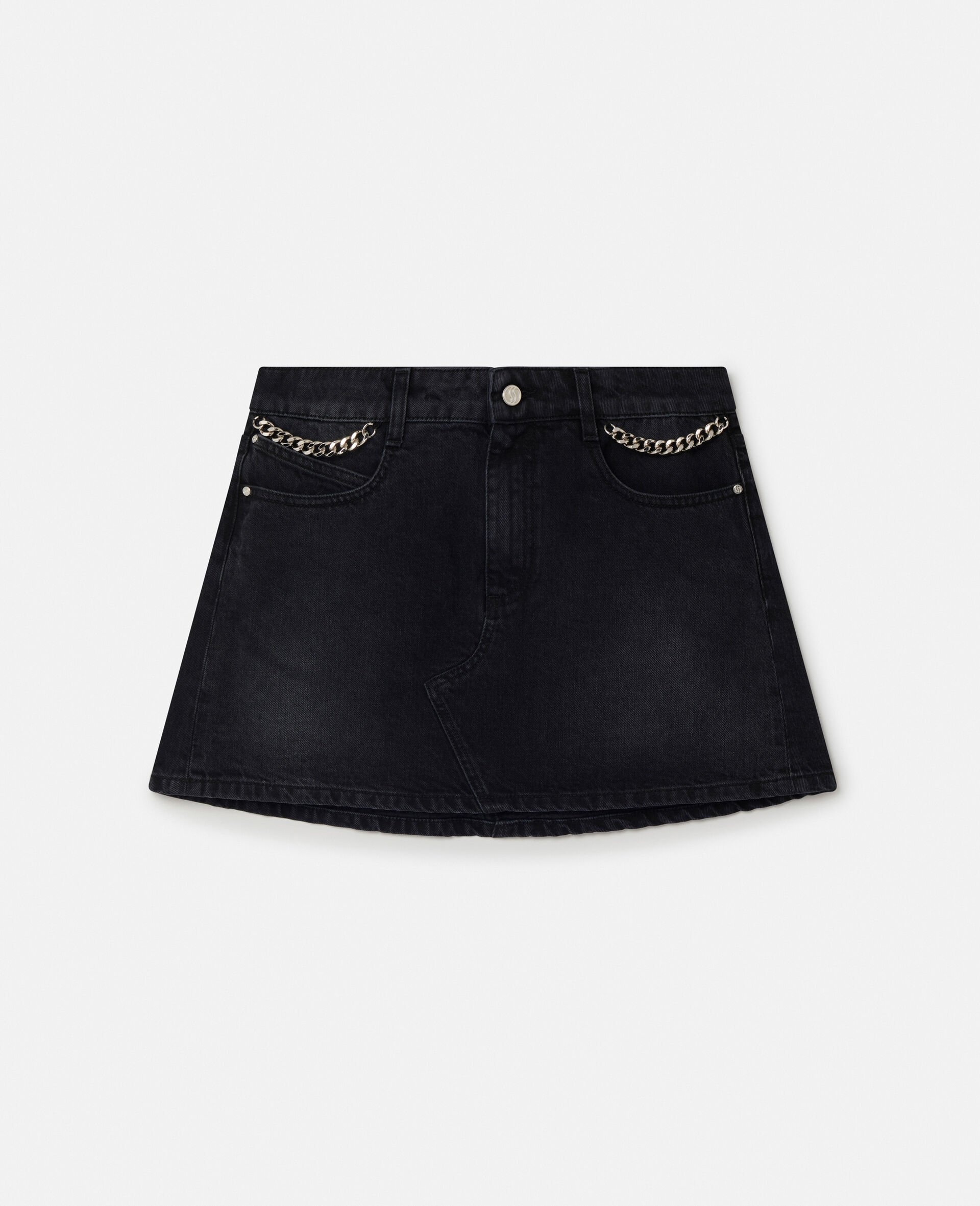 Item 6D01883SPH441000 Change the game with this black denim mini skirt from Stella McCartney, responsibly crafted from organic cotton denim. The skirt is consciously detailed with diamond-cut Falabella chains at the pockets and a Falabella-inspired belt loop at the back. - Colour: Black - Midnight black - Organic cotton denim - Falabella chain along pockets - Stella McCartney logo patch at back - S-Wave embroidery on back pocket - Button and zip fly - Belt loops, and Falabella centre back belt loop - Five-pocket design - Mini length - Made in Italy Product Care & Fit Advice - Care: Dry clean only - Composition: 100% organic cotton - Fits true to size - Designed for a regular fit - Mid-weight, non-stretch fabric - Model is 5ft 10.5in./1.79m, is a size UK 6 and wears a size IT 40 (US 4-6/UK 8/FR 36)