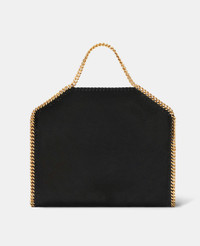Item 234387W93551000U Framed by our signature diamond-cut chain, this Falabella fold-over tote bag is a vegan icon. The bag is consciously crafted from our grained matte Shaggy Deer fabric, specially treated with a semi-gloss sheen. This tote can be worn two ways, folded over as a shoulder bag or as a handheld tote. - Colour: Black - Midnight black - Comfortably fits all tablets and 15" laptops alongside daily essentials - Matte vegan Shaggy Deer fabric with semi-gloss grain - Signature gold recycled brass and aluminium diamond-cut chain - Waxed GOTS-certified organic cotton lacing - Two top handles, and one shoulder strap - One main compartment - One internal slip pocket - Magnetic snap fastening - Engraved gold logo medallion charm - Recycled polyester monogram lining - Made in Italy Product Care & Fit Advice - Care: Use a soft damp cloth with a small amount of demineralised water (likewise for ironing) and apply to all the material. Leave the bag to dry. Avoid scrubbing to prevent damaging the surface of the bag. As this accessory is made from very delicate fabric, we recommend handling with care and avoiding contact with any sharp objects, jewellery, or rough surfaces. When not in use, always store the item in its protective bag. - Composition: Main fabric: 55% polyester, 45% GRS-certified Newlife™ post-consumer recycled polyester, Trims: 70% solventless polyurethane, 30% post-consumer recycled polyester, Lacing: 100% GOTS-certified organic cotton with corn starch wax coating, Handle/strap: 100% recycled brass, Body chain: 100% aluminium, Medallion: 100% zamac, Magnet: 100% stainless steel, Lining: GRS-certified post-consumer recycled polyester - Fits all tablets and 15" laptops. - Size: 37 x 36 x 9cm / 14.5 x 14 x 3.5in. - Handle drop: 11cm - Strap length: 22cm - Weighs approximately 0.85kg - This tote can be worn two ways, folded over as a shoulder bag or as a handheld tote. - All of our shoes and accessories are made from non-leather materials in keeping with our cruelty-free ethos.