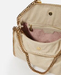 Item 234387W93559300U An adaptable iteration of our iconic Falabella tote, this fold-over tote bag is infinitely wearable. The signature diamond-cut recycled brass and aluminium chain instantly characterises this dynamic bag. Fully lined with a recycled fabric made from plastic bottles, wear the Falabella fold-over tote in one hand for a classic look or over the shoulder to showcase its duality. - Colour: Clotted Cream - Buttery cream beige - Comfortably fits all tablets and 15" laptops alongside daily essentials - Matte vegan Shaggy Deer fabric with semi-gloss grain - Signature gold recycled brass and aluminium diamond-cut chain - Waxed GOTS-certified organic cotton lacing - Two top handles, and one shoulder strap - One main compartment - One internal slip pocket - Magnetic snap fastening - Engraved gold logo medallion charm - Recycled polyester monogram lining - Made in Italy Product Care & Fit Advice - Care: Use a soft damp cloth with a small amount of demineralised water (likewise for ironing) and apply to all the material. Leave the bag to dry. Avoid scrubbing to prevent damaging the surface of the bag. As this accessory is made from very delicate fabric, we recommend handling with care and avoiding contact with any sharp objects, jewellery, or rough surfaces. When not in use, always store the item in its protective bag. - Composition: Main fabric: 55% polyester, 45% GRS-certified Newlife™ post-consumer recycled polyester, Trims: 70% solventless polyurethane, 30% post-consumer recycled polyester, Lacing: 100% GOTS-certified organic cotton with corn starch wax coating, Handle/strap: 100% recycled brass, Body chain: 100% aluminium, Medallion: 100% zamac, Magnet: 100% stainless steel, Lining: GRS-certified post-consumer recycled polyester - Fits all tablets and 15" laptops. - Size: 37 x 36 x 9cm / 14.5 x 14 x 3.5in. - Handle drop: 11cm - Strap length: 22cm - Weighs approximately 0.85kg - This tote can be worn two ways, folded over as a shoulder bag or as a handheld tote. - All of our shoes and accessories are made from non-leather materials in keeping with our cruelty-free ethos.