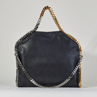 - Black - Polyester Blend - Galvanic Chain - Main Compartment - Two Chain-link Top Handles - Faux Chain Trim - Eco Strap - STELLA MCCARTNEY Branding Stella McCartney’s trademark Flabella Eco Mix bags are designed to make a statement, and the 3 Chain Tote Bag is no exception. Structured from a smooth polyester blend, this tote features a spacious main compartment for your essentials, along with a sleek strap to sling on your shoulder. Two galvanic chain-link top handles stand out over the black base and travel seamlessly along the bag’s edges for a stylishly bold embellishment. and Signature STELLA MCCARTNEY branding is seen throughout. Measures- L35 x H38 x D8 CM