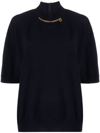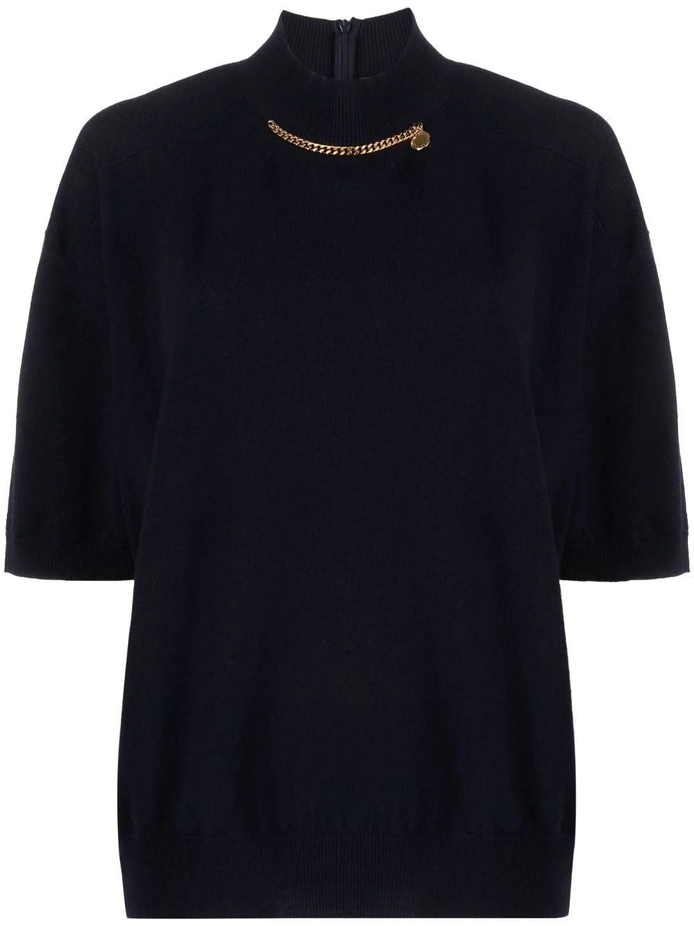 Falabella high-neck wool blouse Highlights - Black - Wool - Knitted construction - Chain-link detailing - High neck - Rear zip fastening - Half-length sleeves - Straight hem Made in Italy Composition Wool 100%, Aluminium 100% SIZE & FIT Model measurements Height 5 ft 10 in(1.79 m) Bust/Chest 31.49 in(80 cm) Hips 35.03 in(89 cm) Waist 23.62 in(60 cm) FittingInformation Designed to be unstructured, offering a loose fit throughout Made with a midweight knit, this piece offers some stretch This piece fits true to size – take your usual size Washing instructions Hand Wash