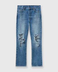 Item 6D03573SQH074052 An ode to our iconic Falabella, these bootcut jeans from Stella McCartney are sliced at the knees and embellished with silver diamond-cut chains that hang across the open gashes. This pair is crafted from organic cotton denim with a faded, distressed vintage feel. - Color: Blue - Dark blue vintage wash - Organic cotton denim - Falabella chains at knees - Distressed details - Concealed front zipper fly - Bootcut - Made in Italy Product Care & Fit Advice Care: Dry clean only Composition: 100% Cotton Fit: Regular fit Sizing: Take your usual size Midweight, non-stretch fabric