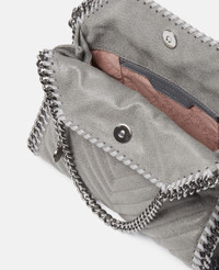 - Color: Light Grey - Falabella Mini Tote - Signature silver diamond-cut chain - Internal slip pocket, snap button fastening - Shaggy Deer Chevron Quilting - Made in: Italy Product Care & Fit Advice - Care: Spot clean only with soft damp cloth - Composition: Main Material 100% Polyester, Lining: 100% Recycled Polyester, Details 70% Polyurethane, 30% Recycled Polyester - Do not machine wash - Do not bleach - Do not tumble dry - Do not iron - Do not dry clean - Clean with a damp clot - Color: Light Grey - Falabella Mini Tote - Signature silver diamond-cut chain - Internal slip pocket, snap button fastening - Shaggy Deer Chevron Quilting - Made in: Italy - Care: Spot clean only with soft damp cloth - Composition: Main Material 100% Polyester, Lining: 100% Recycled Polyester, Details 70% Polyurethane, 30% Recycled Polyester - Do not machine wash - Do not bleach - Do not tumble dry - Do not iron - Do not dry clean - Clean with a damp cloth
