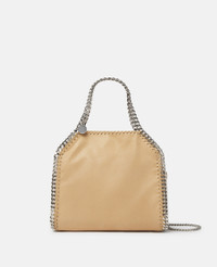 An accessory that transcends day and night, the iconic Falabella mini tote bag is primed for wear-all appeal. Crafted from our signature matte Shaggy Deer fabric with a semi-gloss grain, the bag is framed with a diamond-cut chain in palladium and lined in recycled materials, helping to reduce waste. - Colour: Fawn - Light warm tan - Matte vegan Shaggy Deer Fabric with a semi-gloss grain - Signature palladium diamond-cut chain - GOTS-certified cotton lacing - Two top handles, and one shoulder strap - One main compartment - One internal slip pocket - Press stud fastening - Engraved palladium logo medallion charm - Fully lined with recycled materials - Made in Italy Product Care & Fit Advice - Care: Dry clean only - Composition: 100% organic cotton - Size: 26.5 x 23.5 x 10cm/10.4 x 9.2 x 4in. - Handle drop: 11cm - Strap length: 47cm - Weighs approximately 0.74kg - All of our shoes and accessories are made from non-leather materials as part of our cruelty-free ethos.