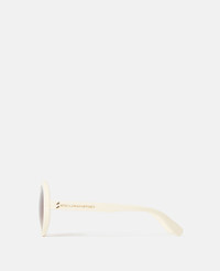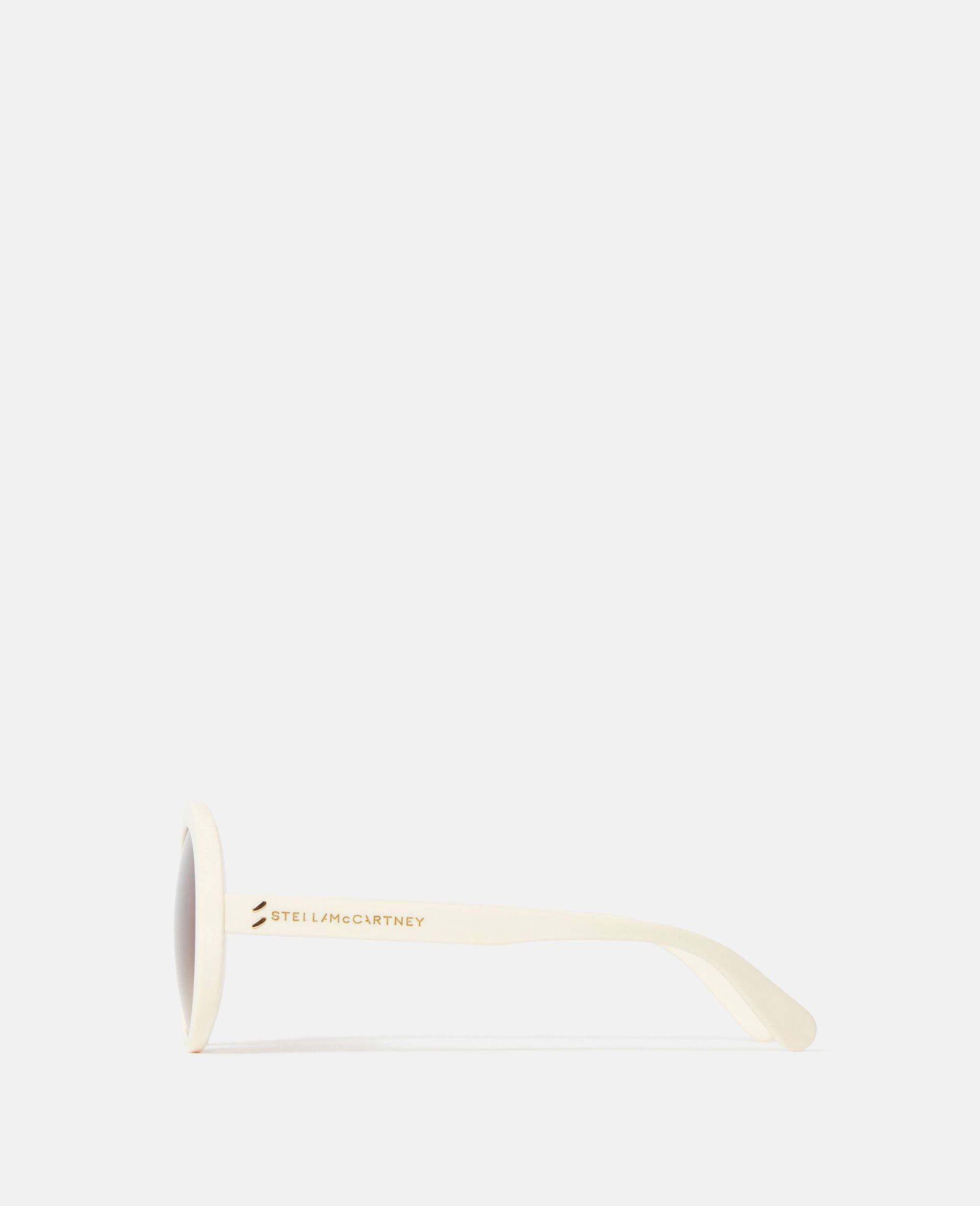 A timeless silhouette, these oversized round sunglasses are fitted with soft, brown gradient lenses and are crafted from bio-based acetate. Designed to be worn every day, protecting our planet for a better tomorrow. - Colour: Cream - Style: Oversized round - Lens: Gradient brown - Lens size: 54mm - Lens category: 2 - Glossy round cream frame - Endura gold pins at temples - Stella McCartney logo on arms - All of our eyewear comes with a protective Falabella Alter Croc case, recycled polyester cleaning cloth and leaflet crafted from recycled paper. Product Care & Fit Advice - Care: Wipe clean only with a clean, dry cloth - Composition: Front and temples: 100% bio-acetate; Trims: 100% metal, Lens: 100% bio-based acetate, Case: 32.4% polyurethane, 31.7% polyester, 17.7% recycled polyester, 12.2% metal, 6% magnet - Lens width: 54mm - Bridge width: 21mm - Temple length: 145mm
