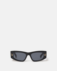 Embrace the Noughties with these black Falabella sunglasses from Stella McCartney. The sunglasses feature a nostalgic chunky rectangular frame with a double gold pin and an oversized diamond-cut Falabella chain at the temples. The solid smoke grey lenses offer 100% UV protection. - Colour: Shiny Black/Solid Smoke - Style: Chunky Rectangular - Front/Temple: Shiny Black - Lens: Solid Smoke - Lens width: 52mm - Lens category: 3 - Shiny black acetate frame - Double gold pin at front frame - Shiny endura gold oversized Falabella chain at temples - Stella McCartney logo on arms - All of our eyewear comes with a protective Falabella Alter Croc case, recycled polyester cleaning cloth and leaflet crafted from recycled paper. Product Care & Fit Advice - Care: Wipe clean only with a clean, dry cloth - Composition: Front and temples: 100% bio-acetate; Trims: 100% metal, Lens: 100% bio-based acetate, Case: 32.4% polyurethane, 31.7% polyester, 17.7% recycled polyester, 12.2% metal, 6% magnet - Size & Fit: Lens width: 52mm, Bridge width: 18mm, Temple length: 135mm