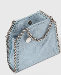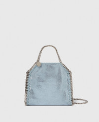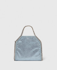 Item 391698WP03014200U Consciously crafted from our signature cruelty-free, pearlescent Shaggy Deer fabric made using recycled materials, this Falabella tote bag is among our most coveted vegan icons. Characterized by its hand-laced, heavyweight diamond-cut chain outline and handles, its interior boasts enough room for your daily necessities with a slip pocket for smaller essentials. - Color: Sapphire blue - Comfortably fits all phones and wallets alongside small daily essentials - Vegan, cruelty-free Shaggy Deer fabric with a pearlescent finish - Signature ruthenium recycled brass and recyclable aluminum diamond-cut chain - Waxed GOTS-certified organic cotton lacing - Two top handles, one shoulder strap - One main compartment - One internal slip pocket - Magnetic snap fastening - Engraved ruthenium logo medallion made from zero-waste zamak - Handcrafted in Italy - All of our shoes and accessories are made from non-leather materials in keeping with our cruelty-free ethos. Product Care & Fit Advice Care: Spot clean only with soft damp cloth. Composition: 100% Polyester - Fit: Comfortably fits small daily essentials. - Size: 7 x 6.8 x 2.3 in - Handle drop: 2.7 in - Strap length: 18.5 in - Weighs approximately: 0.43Kg