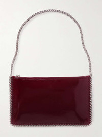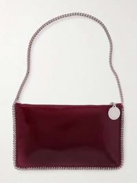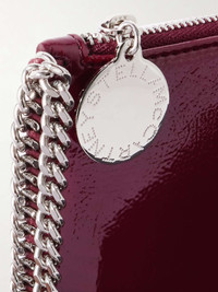 EDITORS'NOTES Stella McCartney has used vegetarian leather since day one, and it's famed for its beautiful quality. This shoulder bag has a crinkled, patent finish, and is compactly sized to fit a wallet, phone and lip gloss. Lower-Impact Materials. This product is made using at least 50% lower-impact materials or ingredients. Find out more about our NET SUSTAIN criteria here. SIZE & FIT This item’s measurements are: - Max. Strap Length: 53cm / 20.9in - Height: 14cm / 5.5in - Width: 23cm / 9.1in - Depth: 0.5cm / 0.2in DETAILS & CARE - Burgundy patent vegetarian leather - Chain shoulder strap - Twill lining - Zip fastening along top