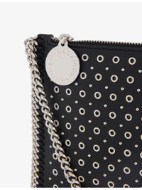 PRODUCT DETAILS - Stella McCartney faux-leather shoulder bag - 100% polyester - Zip fastening - Rectangle shape, one shoulder strap, ruthenium brass and aluminium diamond-cut chain embellishment, one main compartment, engraved logo medallion, monogram lining, semi-gloss grain, handcrafted - Height 24cm, width 14.5cm, depth 1cm, handle drop 20.5cm - Wipe with a clean, dry cloth Ref: R04460338