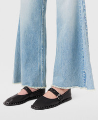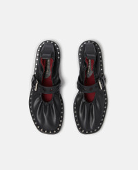 Item 810429W1IL01000 Consciously constructed from our soft, buttery vegan alternative to animal leather, these Falabella ballet flats hug the midsole with an elasticated band. Secured with a star-studded buckled strap, they sit on a comfortable bio-based sole lined with horsebit-inspired studs. - Color: Black - Midnight black - Alter Mat alternative to animal leather - Star-studded buckle strap - Rounded closed toe - Fully lined with recycled materials - Bio-based sole - Slips on - Made in Italy Product Care & Fit Advice Care: Spot clean only with soft damp cloth Composition: Main fabric: 40% polyester 60% polyurethane Size: Fits true to size Heel height: 0.02 in
