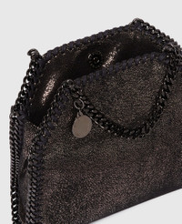 Item 391698WP04891111U Effortlessly elevate everyday looks with this iconic Stella McCartney Falabella Tiny tote bag. Responsibly made from our signature grained Shaggy Deer fabric with a metallic finish, this vegan tote bag is framed by a recycled brass and recyclable aluminum diamond-cut chain and is lined with recycled materials. There’s a slip pocket inside for smaller items, while the main compartment is roomy enough for keys, a phone and lipstick. - Color: Dark gray metallic - Comfortably fits all phones alongside small daily essentials - Matte Shaggy Deer vegan leather alternative with semi-gloss grain - Signature recycled brass and recyclable aluminum diamond-cut chain - Waxed GOTS-certified organic cotton lacing - Two top handles, one shoulder strap - One main compartment - One internal slip pocket - Magnetic snap fastening - Engraved logo medallion charm - Recycled polyester monogram lining - Made in Italy - All of our shoes and accessories are made from non-leather materials in keeping with our cruelty-free ethos. Product Care & Fit Advice Care: Spot clean only with soft damp cloth. Composition: 100% Polyester - Fit: Comfortably fits all phones alongside small daily essentials. - Size: 7 x 6.8 x 2.3 in - Handle drop: 2.7 in - Strap length: 18.5 in - Weighs approximately: 15.3 oz
